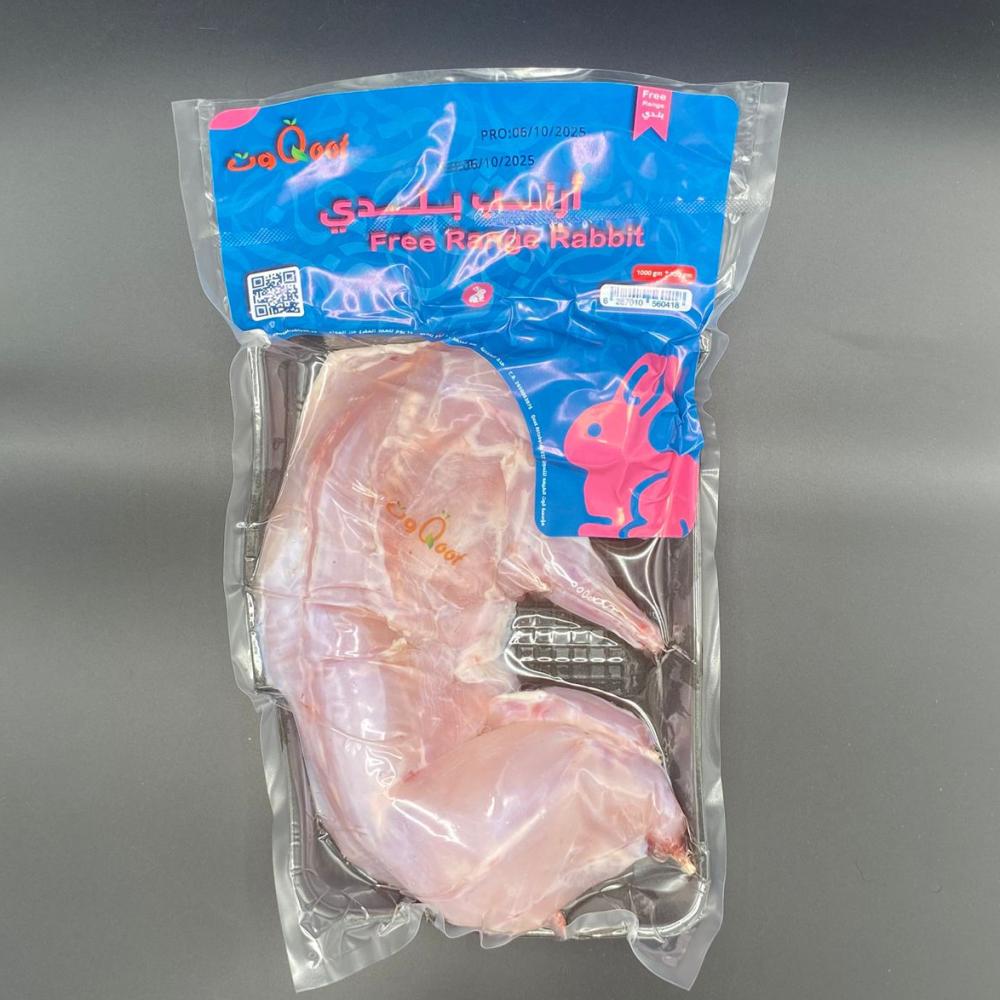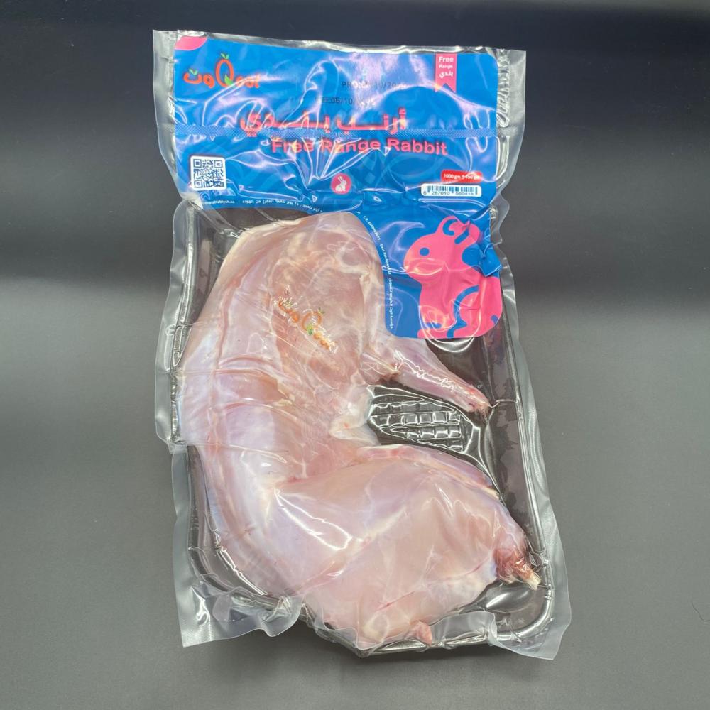 أرنب بلدي مبرد وزن من 1000 جم ±100 انتاج مزارع سعودية تتم تربيته في حضائر مفتوحة مذيوح وفق الشريعة الاسلامية مغذى على الحبوبات النباتية وخالي من الهرمونات